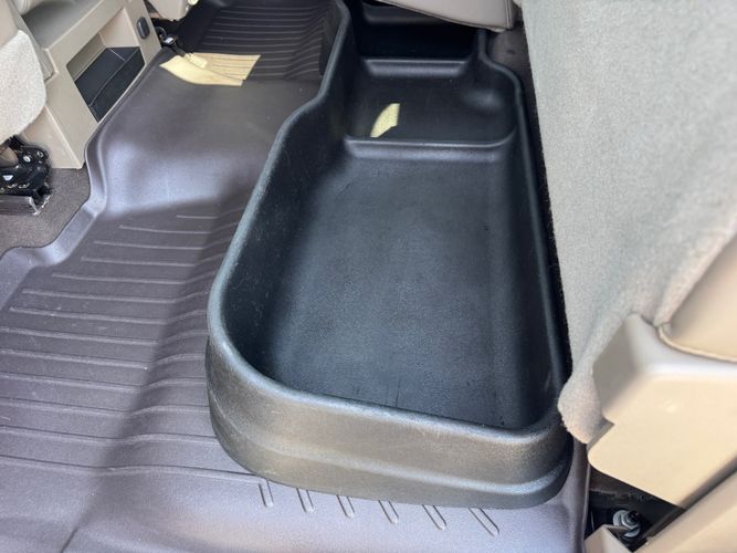 Under seat tray front: Locking front under seat tray