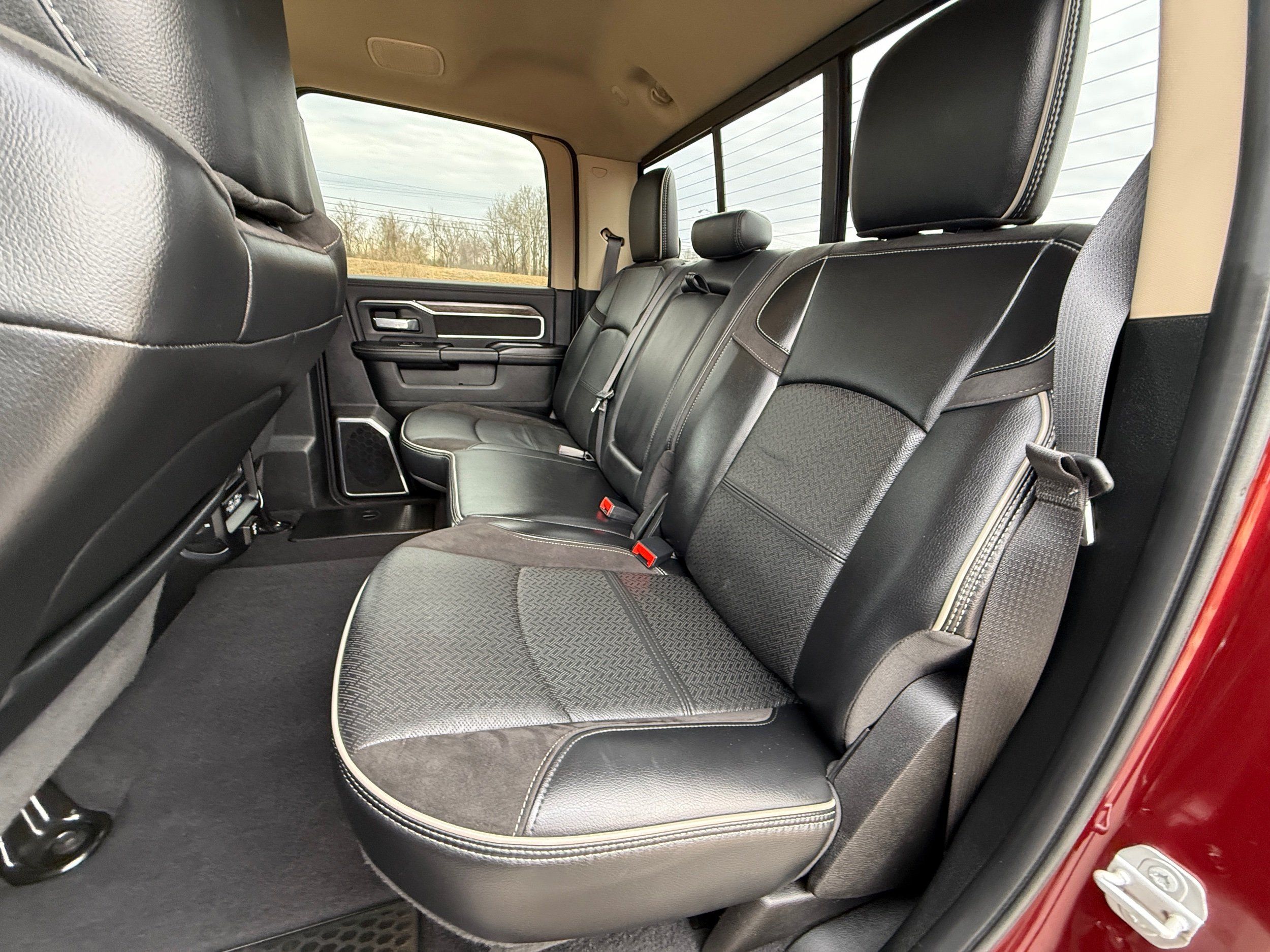 Rear seat upholstery: Simulated suede and leather rear seat upholstery